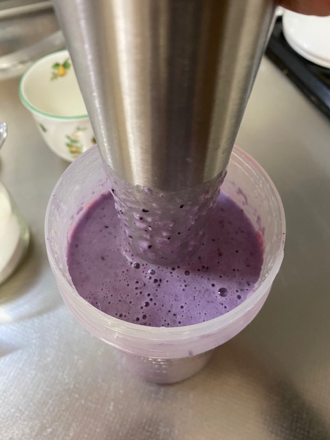 ②りんごとブルーベリー🍎🫐を加えて、ハンドブレンダーでなめらかにします。