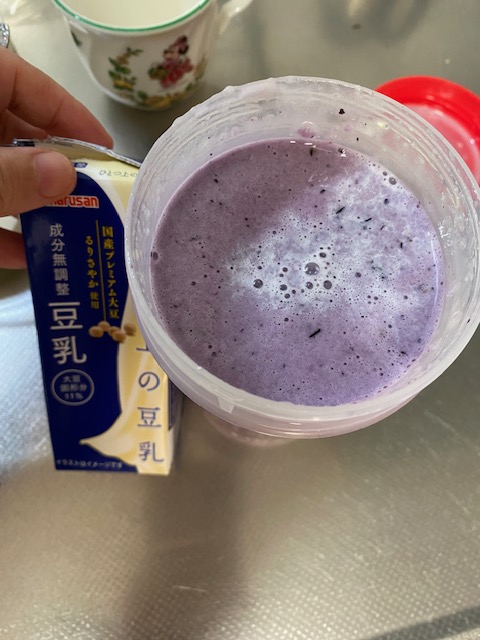 甘酒×プロテイン×ブルーベリーの朝ドリンク。